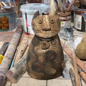 “I work with a variety of clays into which I often add other fragments of material. These ”inclusions” plus the use of oxides and multiple firings add to the alchemy and often give the clay a distressed or patinated surface.”