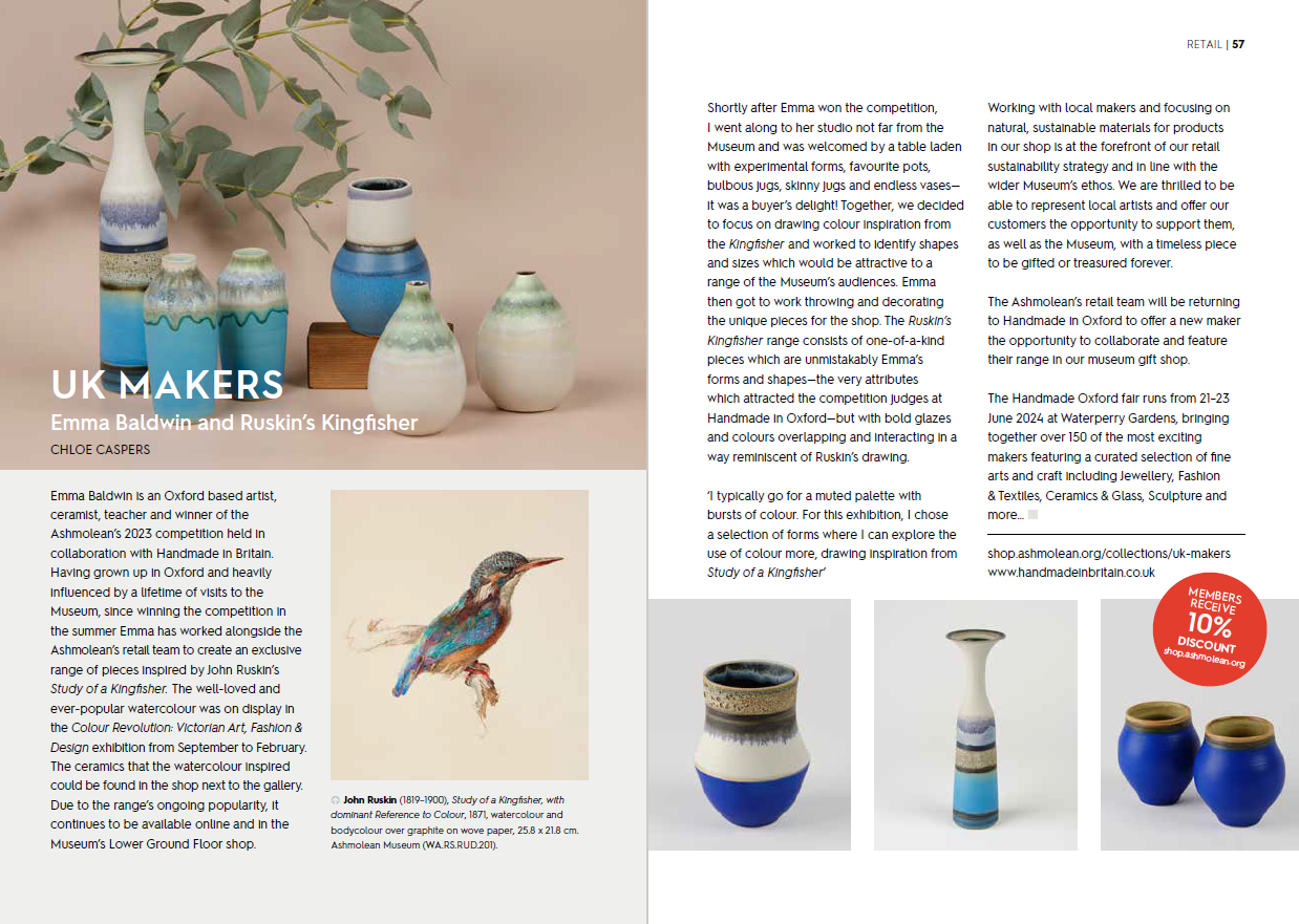 With our huge thanks to our new & returning partners for Handmade Oxford 2025 – Waterperry Gardens, Ashmolean Museum, Oxford, The Society of Designer Craftsmen, London Potters, Oxfordshire Guild, Modern Makers Collective, New Ashgate Gallery Rising Stars, Design-Nation, The Oxford Collection, Future Icons Selects. Arts and Craft Fairs and OX Magazine.
